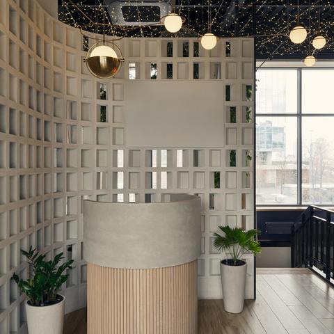 Benutzer definierte Chic Modern Minimalist Holz Kleidung Zähler LED-Beleuchtung Chic Kleidung Store Möbel Oval Parfüm Shop Display Rack